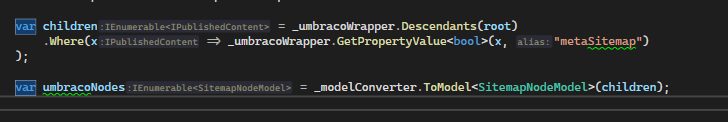 .Where(x => _umbracoWrapper.GetPropertyValue<bool>(x, "metaSitemap"))